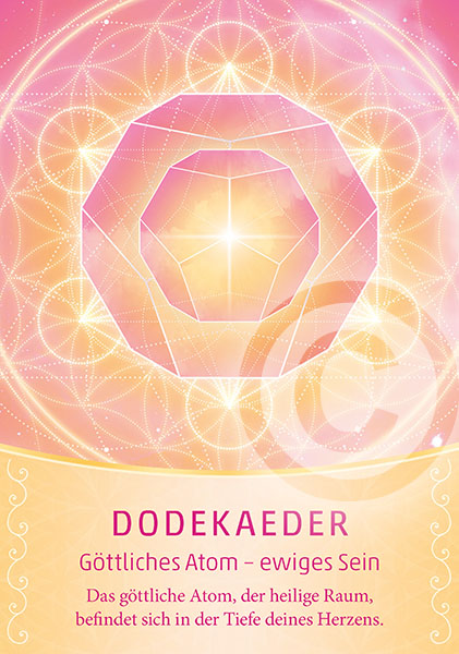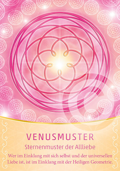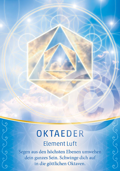 Die Heilige Geometrie richtet uns auf die göttliche Matrix aus. Sie bringt uns wieder in Einklang mit dem höchsten Licht und unseren schöpferischen Kräften. Die Heilige Geometrie erinnert uns an die Vollkommenheit, Schönheit, Harmonie und das Feld der Einheit. Sie führt uns, auf dass wir das Paradies in unserem Leben und auf der Erde wieder betreten und auf diesen lichtvollen Ebenen für immer sein und wirken können. Je länger ich mit der Heiligen Geometrie arbeite, desto befreiter und glücklicher fühle ich mich – eingebettet in ein Feld der unbegrenzten, harmonischen, frei fließenden Lebensenergie, die in mir schwingt und mich führt und die göttliche Saat, die in jedem von uns angelegt ist, zur Entfaltung bringt. Mögen diese Karten ein neues Bewusstsein für Harmonie, die göttliche Ordnung, den Segen, die Heimkehr und das Licht bewirken.